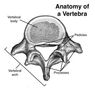 As briefly stated above, vertebrae are the approx. 33 bones separated by intervertebral discs which make up the spine (vertebral column). All vertebrae share a basic common structure. They each consist of an anterior (closest to front) vertebral body, and a posterior (further back) vertebral arch.